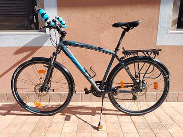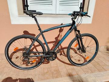 Lombardo Amantea 200, Telaio in alluminio, Taglia 51 cm (L), ruote da 28”, Colore nero opaco con grafiche blu, Sospensioni frontali Forcella Signum, Cambio Shimano, Freni a disco.