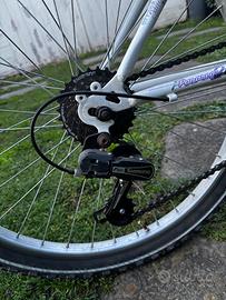 Il cambio Shimano a 6x3 velocità permette di affrontare con facilità salite e tratti pianeggianti, offrendo una pedalata fluida e piacevole. I freni V-Brake in alluminio garantiscono una frenata pronta e sicura, ideale per il traffico urbano.