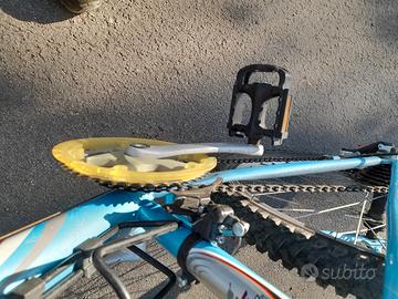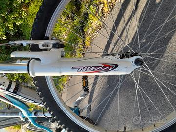 vendo bicicletta MTB marca Nuzzi ruota 24", pneumatici all'90%, freni ok, cambio Shimano 18 rapporti, ammortizzata anteriore, usata con normali segni di usura come in foto. Ritiro solo a mano, oltre che nel comune indicato nell'inserzione, anche in zona tra Bologna e Pistoia.