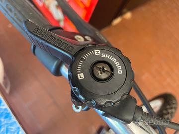 MTB POWER BIKE, cambio SHIMANO, guarniture FMEGA, ruote da 26”, misura verticale (centro mozzo pedali inizio attacco sella) cm. 48, misura orizzontale (centro canotto sella centro canotto manubrio) cm.53, telaio n° SO615060. Condizioni: Buone, sella come nuova, la bici ferma da tempo presenta qualche punto di ruggine, camere d’aria forate.