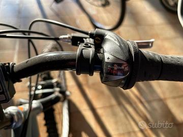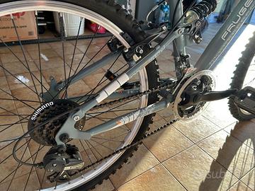 Bicicletta da ragazzo condizioni pari al nuovo con cerchioni 24”. Cambio shimano con 3 corone e pignone da 7 rapporti. Biammortizzata, con conta chilometri e tacchimetro.