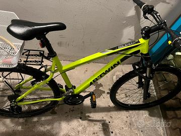 Decathlon rockrider 340 giallo fluo, misura 26 taglia M, con 2 gomme di scorta comprese , il cestino verra smontato al momento della vendita