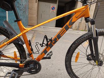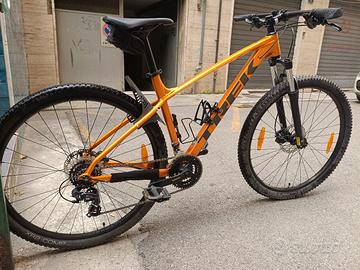 Vendo MTB Trek Marlin 5 Misura L cerchio 29", tenuta in modo perfetto, presenta solo piccoli segni sul telaio dovuti all'utilizzo su sterrato; sono state da poco sostituite pasticche freni anteriori e posteriori, sostituite guaine e cavi cambio e freni e olio. Regalo anche un treno gomme praticamente nuove di misura 29×2.00 + borsa porta attrezzi completa di leve cambio gomme e camere d'aria di ricambio + pompa portatile. PREZZO TRATTABILE. Vendo per passaggio al Gravel nonostante il contatto con la natura che si ha con una MTB è impareggiabile!!!! La bici monta di serie il cavalletto che per estetica ho smontato ma che è disponibile. Scheda Tecnica Trek Marlin 5 (2021) Telaio e Sospensioni Telaio:Alluminio Alpha Silver, passaggio cavi interno, attacchi per portapacchi e cavalletto. Forcella:SR Suntour XCE 28, molla, precarico, escursione 100mm (80mm su XS). Forcella:SR Suntour XCE 28, molla, precarico, escursione 100mm (80mm su XS). Trasmissione e Freni Cambio posteriore:Shimano Tourney TY300 (7 velocità). Deragliatore anteriore:Shimano Tourney TY300 (3 corone). Guarnitura:Shimano Tourney TY301, 42/34/24T. Cassetta:Shimano HG200, 12-32T, 7 velocità. Freni:Disco idraulico Tektro HD-M275 (o simili a seconda del lotto di produzione). Ruote e Componenti Ruote:Cerchi Bontrager Connection (doppia camera). Mozzi:Formula DC-20 (ant) / Formula DC-31 (post). Pneumatici:Bontrager XR2 Comp, 29x2.20" (per taglie M-XXL). Manubrio/Attacco/Sella:Bontrager in lega di alluminio. Peso:14.59 kg circa (taglia M). Caratteristiche Principali Versatilità:Perfetta per principianti, adatta a sentieri sterrati e commuting quotidiano. Posizione di guida:Ergonimica e confortevole, ideale per lunghe pedalate. Affidabilità:Componentistica Shimano entry-level robusta.