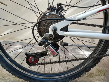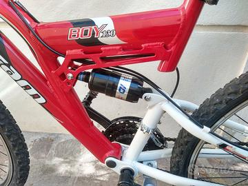 Mtb di alta qualità fabbricata a Rieti adatta dagli 8 ai 14 anni. Usata pochissimo, in eccellente stato. Modello raro con freni a disco cambio Shimano 21 velocità doppio ammortizzatore con telaio in acciaio a sospensione. Regalo casco visibile in foto. Disponibile anche il sellino originale. Listino del nuovo 350 euro Prezzo pubblicato non trattabile: NON RISPONDO A CHI FA OFFERTE AL RIBASSO Ritiro zona Castelli Romani/Appio/Ciampino