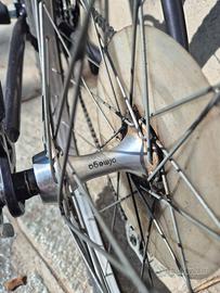 Bicicletta mountain bike 26" con componentistica: - cambio Shimano 6x3 - sganci rapidi ruota anteriore/posteriore Miche - cerchi in alluminio Ofmega - movimento centrale Miche - freni alluminio V-brake - copertoni in buono stato