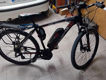 Bicicletta a pedalata assistita, fornita con due batterie, una da 250 (dotazione) e una da 500 W. Ruota da 27,5. Verrà fornita con due manubri (quello dell'ultima foto è l'originale). A richiesta il portapacchi con luce posteriore (100 euro extra) ora installato. Cambio Shimano Altus. Freno a disco meccanico anteriore e posteriore. Motore Bafang MW G340.250 36 VOLT centrale. Display a led.