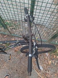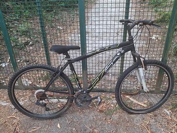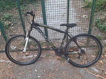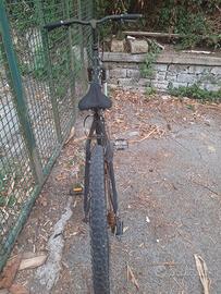 Vendo bicicletta mountain bike usata. I freni sono funzionanti. La bici è stata all'aperto per diverso tempo e presenta segni di usura e ruggine sulla catena, sugli ingranaggi, sulla forcella anteriore e su altri componenti. Il deragliatore e le altre parti meccaniche sono da controllare e riparare. Ideale per chi cerca pezzi di ricambio o per un appassionato che vuole cimentarsi in un progetto di restauro.