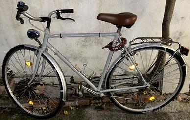 vendo, per cambio misura, bicicletta Olmo con cerchi da 28, entrambe i pneumatici e camere d'aria appena cambiati, 2 moltipliche, 7 rapporti, manubrio in alluminio, portapacchi posteriore; fanale a led, sella, campanello e chiusura tutti nuovi. Ottime condizioni.