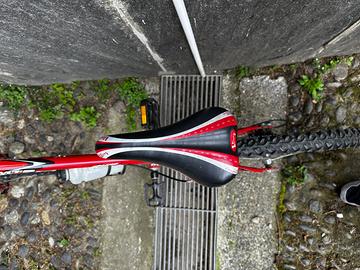 Mountain bike entry-level con telaio in alluminio, cambio Shimano Tourney 3x6, freni V-brake e forcella rigida. Condizioni generali buone, usura minima, adatta a percorsi cittadini o leggeri sentieri.