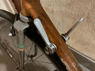 ATTENZIONE! DA RIPARARE! Copertoni e camere d’aria da sostituire Da revisionare nella meccanica ATTENZIONE! No spedizione Bicicletta da strada/da corsa Olympia Competition con numero di serie Cambio Campagnolo, cassetta 7 velocità, 3 corone Ruote 28” Freni a pinza Modolo Ideale per restauro