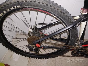 Vendo bicicletta orbea alma .La bici ha il freno anteriore mancante, la forcella da revisionare e dei graffi nel telaio, come da foto.Pneumatici maxiss cambiati da poco, con camera aria.Funzionante, la uso quotidianamente ma visto i pezzi mancanti la vendo come usato per pezzi.Euro 350 non trattabili, o permuto con altra bici.