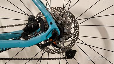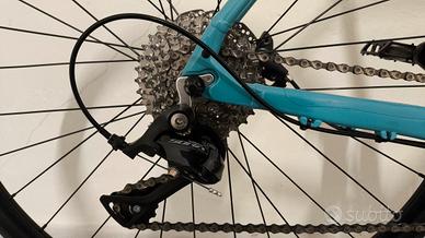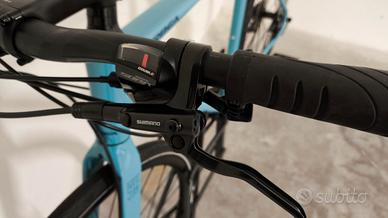 Freni a disco idraulici Shimano MT200 e trasmissione Shimano Sora a 9 velocità (11-34 denti). Guarnitura a 2 corone (48-32 denti).