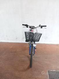 bicicletta da bambina colore grigio e blu conn cestino e cambio shimano.
