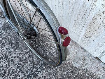 Rara bicicletta Paglioli ( Modena anni 50) con contropedale, aggiunto successivamente un freno con leva sulla destra. Manubrio corno di bue, fanale a goccia , campanello bronzino ( di bronzo. Aggiunta dopo sella Brooks anatomica. Tutto originale tranne sella e aggiunta della leva del freno. Bellissima e rarissima, in perfette condizioni. Telaio in acciaio ( uno dei primi )