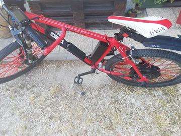 Si vende bicicletta a pedalata assistita telaio mtb. Come nuova, sostituiti di recente cerchio, camera d'aria + molle dei freni posteriori e cambio. Sella e forcelle professionali. Cavalletto in acciaio regolabile. Provvista di luce notturna anteriore e parafango posteriore.