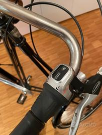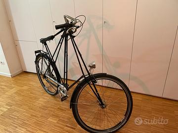 Perfetta, usata pochissimo e tenuta in casa. Produttore attuale (Germania), modello originale, misura L, cambio interno al mozzo Shimak Nexus 8 vel., portapacchi originale posteriore, sella e manopole in pelle in condizioni perfette.