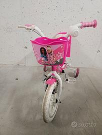 Bicicletta per Bambina 12” 2 Freni Barbie Rosa/Bianca in ottime condizioni usata pochissimo sempre con le rotelle nessun segno di caduta come nuova