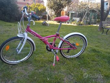 Bicicletta da bambina 7-11 anni. Marca B'Twin. Telaio in acciaio. Ruote 20" . Cambio manuale,Sella ergonomica regolabile in altezza.Provvista di cavalletto. In ottime condizioni.