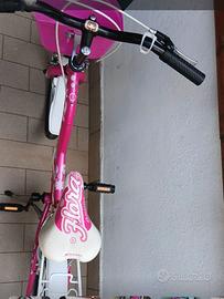 Bici semi nuova per bambina (FLORA), provvista di rotelle. Ruota 20x1.75.