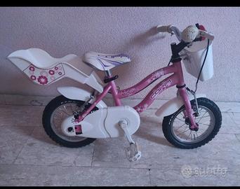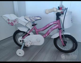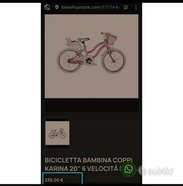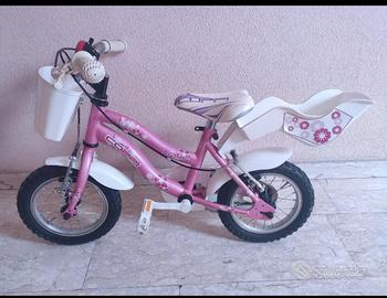 La Coppi Karina con telaio 39 cm è una bici da bambina in acciaio con ruote da 30 cm di diametro, freni V‑Brake, coperture Kenda, cestino anteriore e seggiolino portabambola posteriore, caratterizzata da design rosa‑bianco con grafiche floreali e pensata per un uso quotidiano sicuro e confortevole. Stima in immagine. Consegno in Trento.
