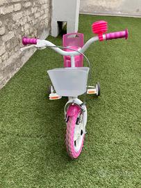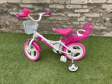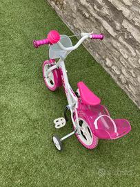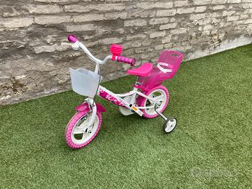 Vendo bicicletta per bambina come nuova e perfettamente funzionante, comprensiva di cestino, rotelline e seggiolino posteriore. Taglia 12” adatta per bambini di altezza compresa tra i 75 e 110 cm, dai 2/3 anni fino ai 5