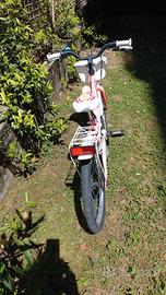 Vendesi splendida bicicletta da bambina R20 completa di cestino e portapacchi. Usata pochissimo e con bellissimi colori rosa e bianco.