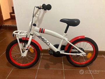 Vendo bicicletta per bambini da 4-6anni 16 pollici AMIGO - colore rosso, bianco, nero Kit rotelle incluso. Buone condizioni, con alcuni segni di usura Ritiro a carico dell’acquirente