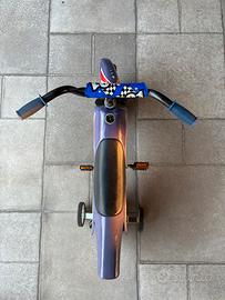 triciclo bambini dai 2 ai 6 anni formato moto-cross con adesivi e design,utilizzata molto poco,ruota frontale da gonfiare