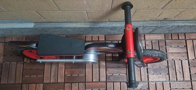 Bicicletta senza pedali in legno (modello Sport Bike Red) del marchio WOOMAX usata pochissimo e praticamente nuova (si vede dal livello di usura delle gomme). Caratteristiche del modello: Materiale: Realizzata in legno eco-sostenibile e biodegradabile. Età consigliata: Adatta a bambini dai 2 ai 5 anni Sicurezza: Il manubrio ha una rotazione limitata a 45° per evitare sterzate improvvise e cadute. Comfort: Include una sella imbottita ed ergonomica e manopole in gomma con protezioni laterali