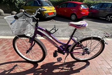 Splendida bicicletta per bambina/ragazzina, in acciaio con cerchi in alluminio, ruote da 24 pollici, cestino anteriore e portapacchi posteriore, con cambio Shimano TY21 a 6V. Colore Viola / Fuxia come da foto.