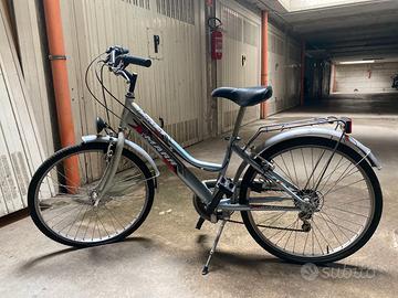 Bicicletta in buone condizioni (un pochino arrugginita sul manubrio come mostrata in foto) che ho usato da bambina (7 - 12 anni circa). Sellino regolabile, con marce, con porta pacchi e dinamo per la luce. Le gomme delle ruote sono da controllare/cambiare.