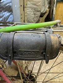 borsellino originale con all interno il gorredo per riparare le camere a d aria con una scatoletta di metallo francese originale Velox(made in France)