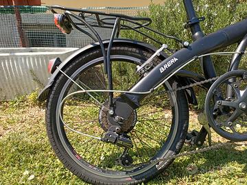 Vendo bicicletta pieghevole Brera, modello "Quicky", colore nero opaco. La bici è la soluzione ideale per il tragitto casa-lavoro (intermodalità treno/metro), per muoversi in città, o per essere caricata comodamente nel bagagliaio dell'auto o in camper occupando pochissimo spazio. Caratteristiche principali: - Telaio: Pieghevole in modo rapido e intuitivo (si chiude a snodo a metà telaio e si abbatte il piantone del manubrio). - Ruote: 20 pollici con cerchi in alluminio Tekmax, il miglior compromesso tra agilità e stabilità su strada. - Cambio: Shimano a 6 velocità (deragliatore SIS posteriore e pratico comando al manubrio Revoshift). - Freni: V-Brake Artek anteriori e posteriori. - Regolazioni: Sella ergonomica e manubrio ampiamente regolabili in altezza tramite sgancio rapido (si adatta facilmente a diverse stature). - Accessori inclusi: Portapacchi posteriore integrato, parafanghi, cavalletto laterale, pedali, catarifrangente anteriore, fanalino posteriore, portaborse anteriore (borsa inclusa). Condizioni: La bicicletta è usata, solida e funzionante. Presenta normali segni estetici dovuti al tempo e al fatto di essere stata ferma, ma la struttura è perfetta, lo snodo centrale è saldo e i copertoni sono in buono stato. Meccanica in ordine: prima di riporla è stata fatta una revisione completa, quindi la bici è pronta all'uso. Scambio a mano in zona Bergamo. Disponibile per essere visionata e provata. Contattatemi tramite la chat del sito per qualsiasi informazione o altre foto. Prezzo trattabile.