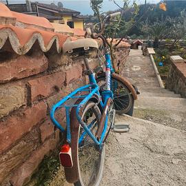 Vendesi bicicletta pieghevole originale marchio Atala, un classico del design italiano stile "Graziella". La bici è interamente originale e rappresenta un'ottima base per un progetto di restauro vintage. Caratteristiche: Telaio: Pieghevole, colore azzurro originale con decalcomanie Atala ancora visibili. Accessori inclusi: Faro anteriore originale, dinamo, portapacchi posteriore e campanello. Stato: La bicicletta è rimasta ferma per diverso tempo. Presenta ruggine diffusa sulle parti cromate (manubrio, cerchi e parafanghi) e necessita di una revisione meccanica completa e cambio copertoni. Perfetta per appassionati di ciclistica d'epoca o come oggetto da esposizione per vetrine e locali in stile retro.