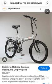 Bici pieghevole , pedalata assistita, aitonomia circa 10-15 km, l’unica pecca è in salita si scarica la batteria velocemente. Ideale per muoversi in città, anche senza la batteria, si piega facilmente ed entra in bagagliaio senza occupare tanto spazio. Ruote di 20’’ Prezzo trattabile.