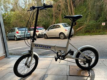 Come da titolo vendo, causa inutilizzo, bicicletta pieghevole ”MARINER”, in perfette condizioni, utilizzata in una singola occasione e perfetta per i possessori di barche, ma anche per un utilizzo urbano. Essa presenta ruote in lega leggera da 16”x1,75”, cambio shimano 7 speed, telaio in acciaio al carbonio verniciato con resine epossidiche, freno anteriore tradizionale e posteriore a caliper, chiusura ultra rapida in 10”, con sistema brevettato. Misure: piegata cm 72x58x31, peso kg 12.