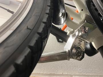 Descrizione: Vendo per inutilizzo bellissima bicicletta pieghevole Olmo modello Centro, con ruote da 20 pollici. Si tratta di un prodotto di alta qualità di uno dei marchi storici del ciclismo italiano, molto robusta e rifinita rispetto alle classiche bici economiche. Ideale per il "bike-to-work", da caricare comodamente in auto o camper, o da portare sui mezzi pubblici (treno/metro) grazie al sistema di chiusura rapido e molto compatto. Caratteristiche tecniche: Telaio: In lega di alluminio leggero, facile da sollevare e trasportare. Cambio: Shimano a 6 velocità, fluido e preciso, ideale per affrontare anche salite cittadine. Freni: Sistema V-Brake in alluminio per una frenata sicura. Accessori inclusi: Portapacchi posteriore, parafanghi, catarifrangenti e pedali pieghevoli salva-spazio. Condizioni: La bici è in condizioni “nuova”, ha fatto 3km e sempre tenuta al riparo (come visibile in foto). La meccanica è perfetta e la bicicletta è pronta all'uso, non necessita di alcuna manutenzione. Prezzo: 260 € Ritiro: Consegna a mano a Genova
