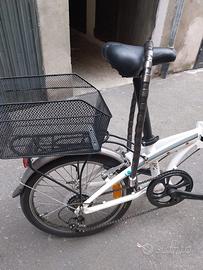 Bicicletta pieghevole in ottime condizioni leggera e comodamente trasportabile. Da chiusa occupa poco spazio. Dotata di cambio con tre marce cestino posteriore e due catene