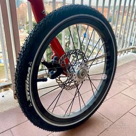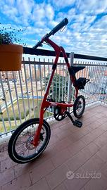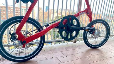 Bicicletta pieghevole STRIDA Red Devil, praticamente nuova (è stata usata 3 volte e i penumatici hanno ancora i “peletti”) Bicicletta intermodale perfetta per i tragitti urbani e l'uso quotidiano: da chiusa occupa poco spazio (circa 115 x 51 x 23 cm) e può essere portata in treno, metro, autobus e ufficio. È agile e aiuta ad essere veloci negli spostamenti urbani di tutti i giorni. Facilissima da aprire e chiudere con semplici gesti e senza sporcarsi, è molto leggera (circa 10kg.). Il telaio in alluminio, i freni a disco e la trasmissione a cinghia la rendono adatta ad ogni tipo di spostamento urbano.