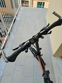 mod. Verge P20 tutta in alluminio, leggera e velocissima, ottima anche in salita, cambio SRAM a 20 velocità completa di parafanghi, portaborse alluminio portata 25 kg. contachilometri, portaborraccia, pneumatici appena sostituiti Schwalbe Kojak come pure la sella Specialized, sacca per trasporto gratuito su bus e treni, borsa centrale posteriore Deuter. Bici davvero come nuova