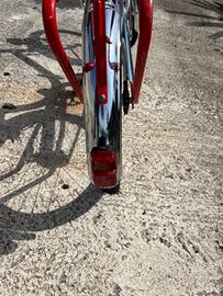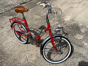 Vendo bici pieghevole Tipo Graziella dei primi anni '80. Tenuta in perfettissimo stato in garage coperta da un telo, ha conservato le cromature originali come fossero nuove. Ho necessariamente cambiato copertoni e camere d'aria perchè stando ferma tanto tempo si erano completamente cristallizzati. Ho aggiunto le luci a Led ma dispongo comunque della luce davanti e della dinamo originali. Non ho volutamente cambiato la sella, essendo originale comoda e con le molle ha più valore, un bravo tappezziere con 20 euro la sistema. Qualche graffio qua e là non ne inficiano la qualità e il perfetto stato di funzionamento.