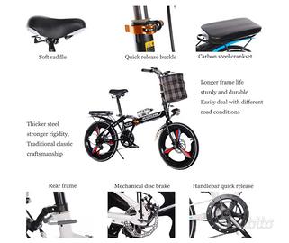 Bicicletta 20 Pollici Bicicletta Pieghevole per Adulti Biciclette Urbane Biciclette Pieghevoli per adolescente Bici da città strada velocità Variabile A 6 velocità Bicicletta Portatile