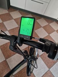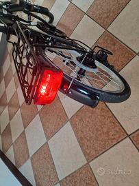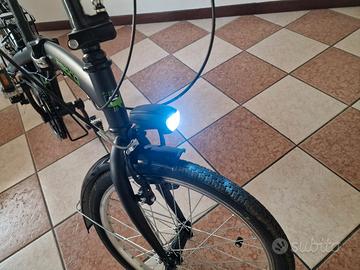 Vendo bicicletta pieghevole con tutti gli accessori: luce anteriore, luce posteriore e display di monitoraggio.