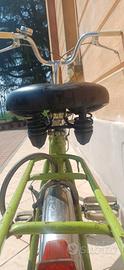 Vendo bicicletta pieghevole d'epoca, iconico modello anni '60/'70 in una splendida colorazione verde originale. Perfetta per gli amanti del vintage, collezionisti o per chi cerca un mezzo agile e di stile per la città. Dettagli e Condizioni: Modello: Pieghevole classica (stile Graziella). Colore: Verde originale conservato, con affascinante patina del tempo. Componenti: Accessoriata con portapacchi posteriore, faro anteriore d'epoca e campanello. Stato: La bici è un "conservato". Necessita di una revisione generale e di una pulizia per tornare a splendere al 100%, ma la struttura è solida e il meccanismo di chiusura è funzionante.