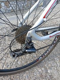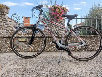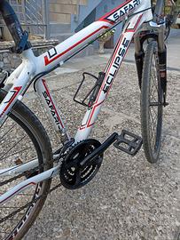 Bicicletta Safar Eclipse. È una bicicletta di tipo ibrido/trekking adatta a percorsi misti. Il telaio è in alluminio di colore bianco con grafiche rosse e nere. È dotata di una forcella ammortizzata anteriore di marca Zoom per assorbire le asperità del terreno. Il sistema di cambio è Shimano, montato su una trasmissione a più velocità. Presenta ruote da 28 pollici con pneumatici adatti sia all'asfalto che a sentieri sterrati leggeri. COME NUOVA NESSUN GRAFFIO USATA POCHISSIMO PARI AL NUOVO