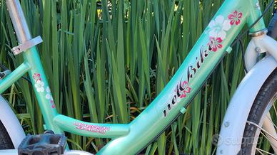 Bicicletta ragazza ruota 24", cambio Shimano 6 rapporti, cavalletto, portapacchi, fanali a dinamo.