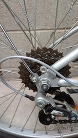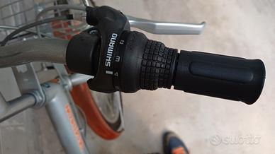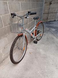 Bicicletta ragazza Dechatlon misura 24 come nuova cambio shimano 6 marce, con comando al manubrio, adatta per ragazza copertoni nuovi, accessoriata di cestello e luci LED posteriore conservata in garage appesa per preservare le gomme - consegna a mano dz Dechatlon costa 230 euro