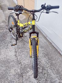 Bicicletta da ragazzo come foto in ottimo stato, bicolore giallo/nero, sellino bianco, cambio shimano, cavalletto