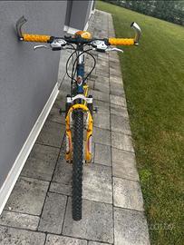 Bicicletta ragazzo/ uomo con ammortizzatori. Colore giallo e blu. Misura raggio 26. Tipologia downhill