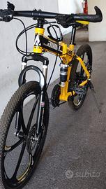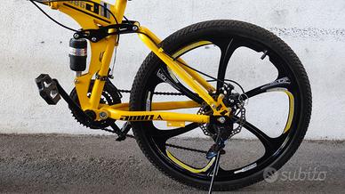 Bicicletta ruote a razze da 24, full suspection, freni a disco, 21 marce, ripiegabile, porta borraccia.